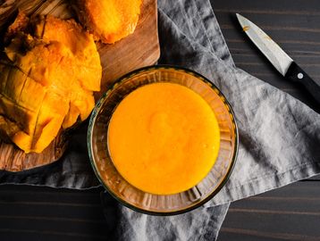 Lush, velvety essence of a fruit, meticulously separated from the coarse skin and hard seeds